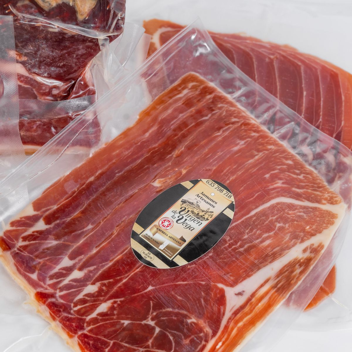 Lote de Jamón Gran Reserva con curación natural de 24 a 26 meses, compuesto por mazas deshuesadas, tacos y lonchas envasadas al vacío, resultado de un proceso artesanal de maduración lenta que garantiza sabor, calidad y tradición.